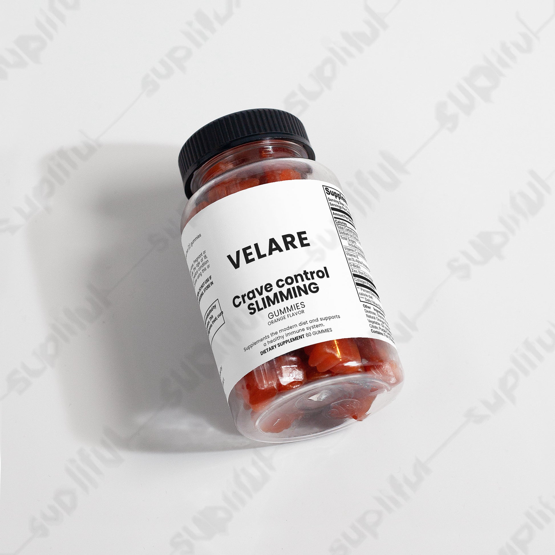 Ingredients: Sodium (as Sodium Citrate), Vitamin C (as Ascorbic Acid), Vitamin E (as DL-Alpha-Tocopheryl Acetate), D-Biotin, Zinc (from Zinc Citrate), Collagen Peptide, Sugar, Glucose Syrup, Dextrose, Glycine, Pectin, Coconut Oil, Citric Acid, Natural Orange Flavor, Sucrose fatty acid ester, Vegetable Oil (contains Carnauba Wax), Sodium Citrate, Purple Carrot Juice Concentrate (Color).